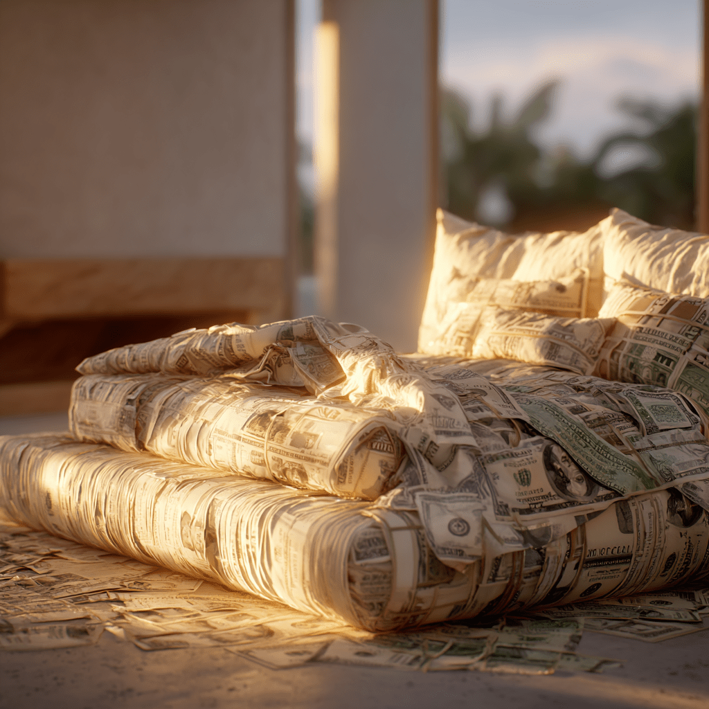 달러로 만들어진 침대